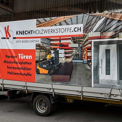 Für Kundinnen und Kunden übernimmt die Knecht & Co. AG gerne auch den Transport der Waren. Mit dem hauseigenen Fuhrpark liefern wir Holzwerkstoffe und Baumaterial von Baden-Dättwil (AG) an den gewünschten Ort.